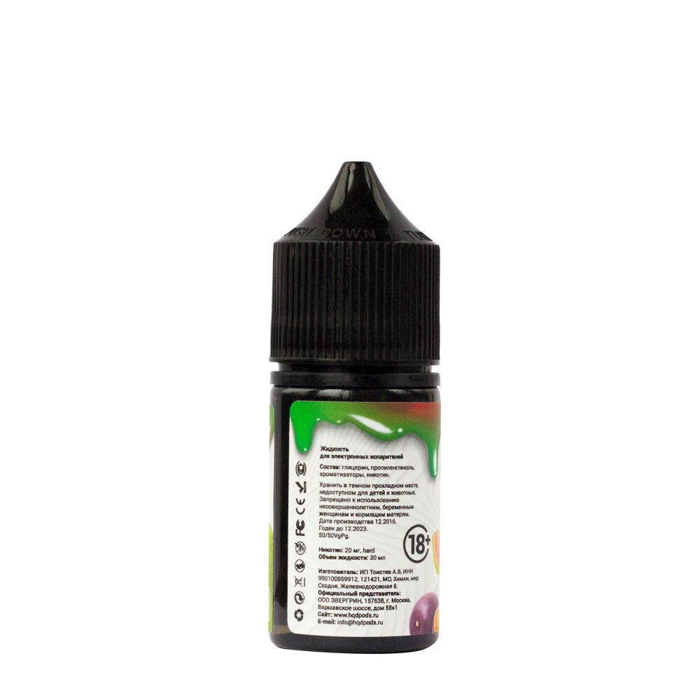 Жидкость HQD MIX IT Гуава Гуанабана Маракуйя - это уникальная солевая жидкость, разработанная специально для использования в электронных сигаретах. Она отличается от обычных жидкостей для заправки электронных сигарет своим составом, включающим солевой никотин. Благодаря этому, никотин быстрее всасывается в организм, обеспечивая более гладкое и эффективное удовлетворение потребности в никотине.